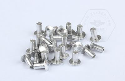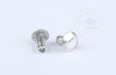 扁圓頭半空心鉚釘主要用于金屬薄板或皮革、帆布、木料等非金屬材料的鉚接場合。
